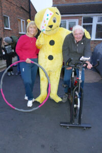 Friends and neighbours joined in the fun throughout the day by cycling for 30 minutes each whilst Chris kept the hoola hoop going for an impressive six-and-a-half hours.