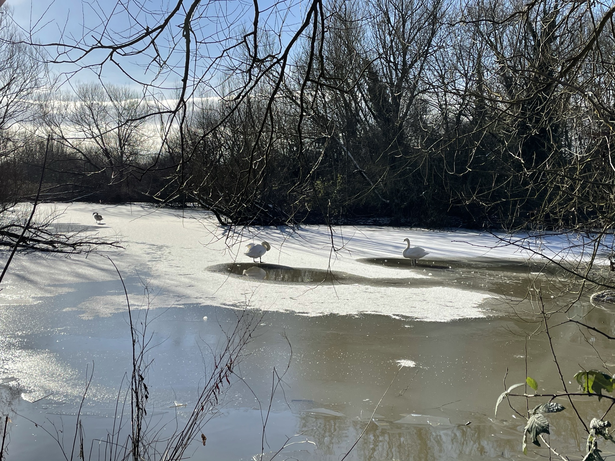 I thought I would share with Syston Town News readers my impressions of a walk one snowy day in February, which can sometimes be a dismal month when we are longing for spring to come. I am writing this on 11th February having just returned from Watermead Park, a bit tired but feeling heartened by the beauty I have seen this sunny morning.