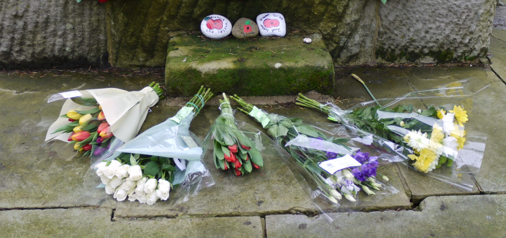 Our pictures above, show some of the tributes left on memory and the flag at half mast.