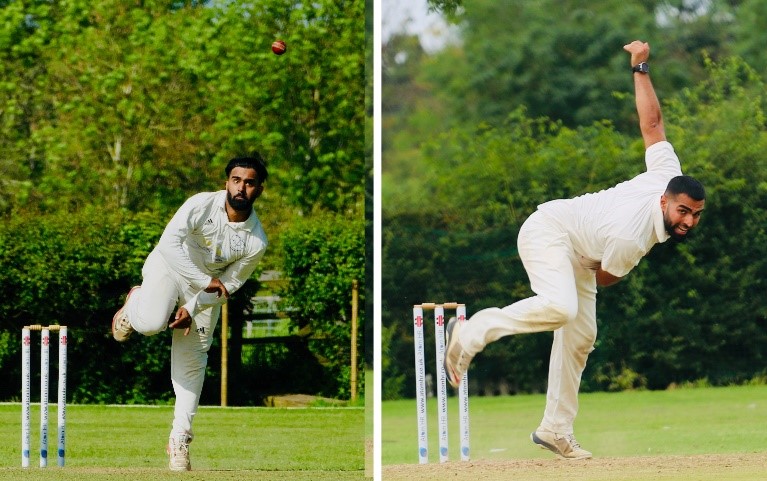 side to 150-7. Pace bowler Bilal Pardesi led the attack taking 5-38 and making it 12 wickets on the day for the Pardesi brothers (both are pictured left). Syston chased down the runs to win by 5 wickets thanks to Asad Pathan (37), George Royle (29) and Dharmist Bathia (30 not out).