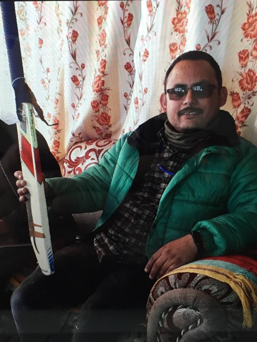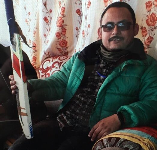 It may be surprising to hear that cricket is the most popular sport in Nepal and the national team play one day matches against other countries such as Papua New Guinea, Oman and USA. A member of the Wreake Valley Rotary club had arranged a trip to the country to supervise a project they were sponsoring at a school for partially sighted/blind pupils and before going she was asked if she could take some cricket equipment. Town C.C. President, David Fox arranged for one of Syston’s junior coaches, Steve Dealey, to provided two bats which were duly packed into her luggage. The children play with a soft ball with bells inside to help to overcome their disability. The photo shows Nirmal, a blind teacher, with one of Syston’s bats.