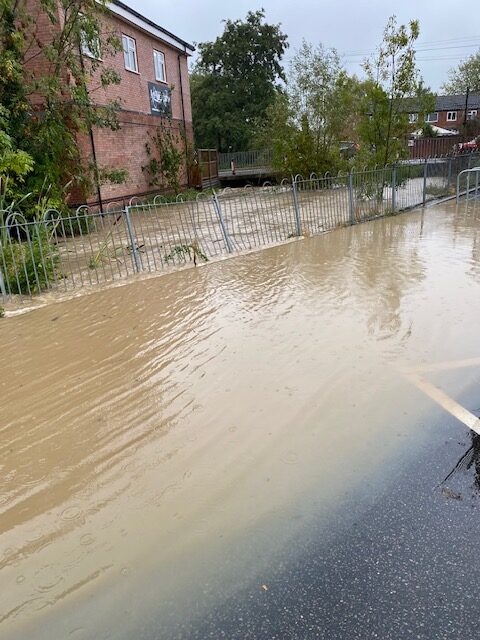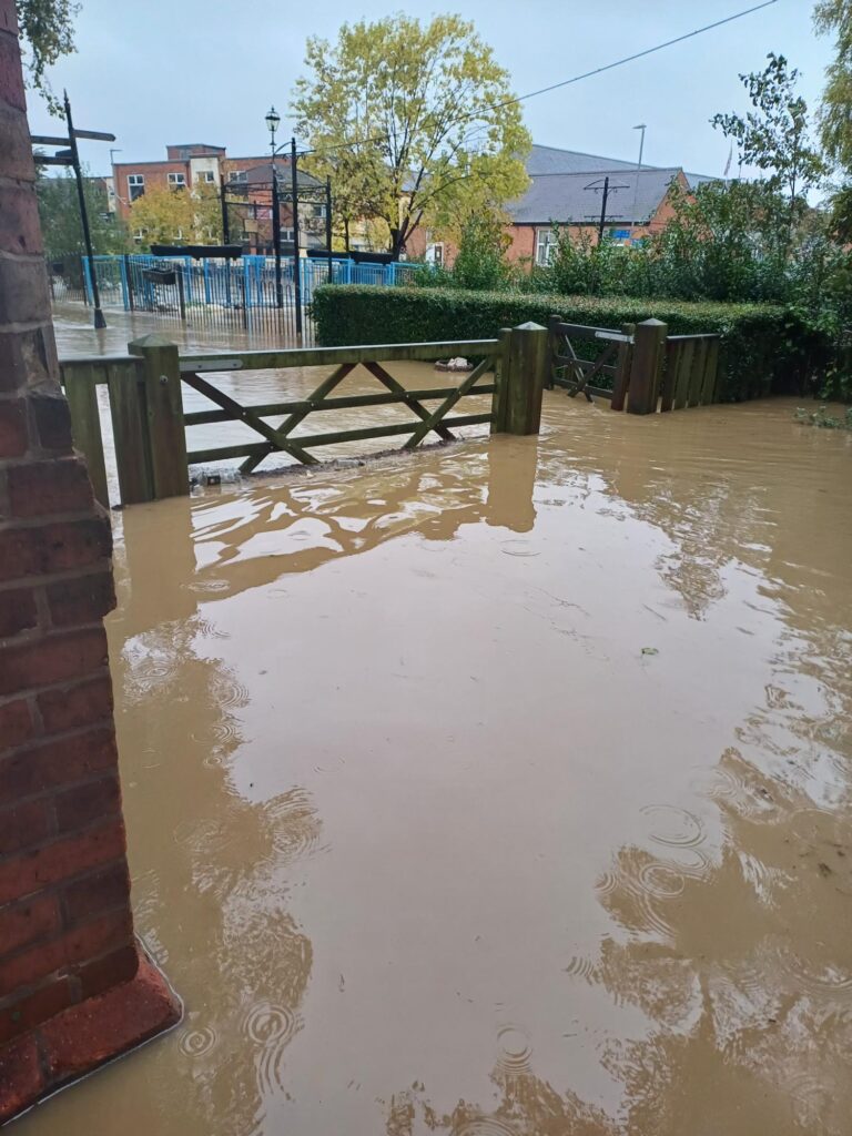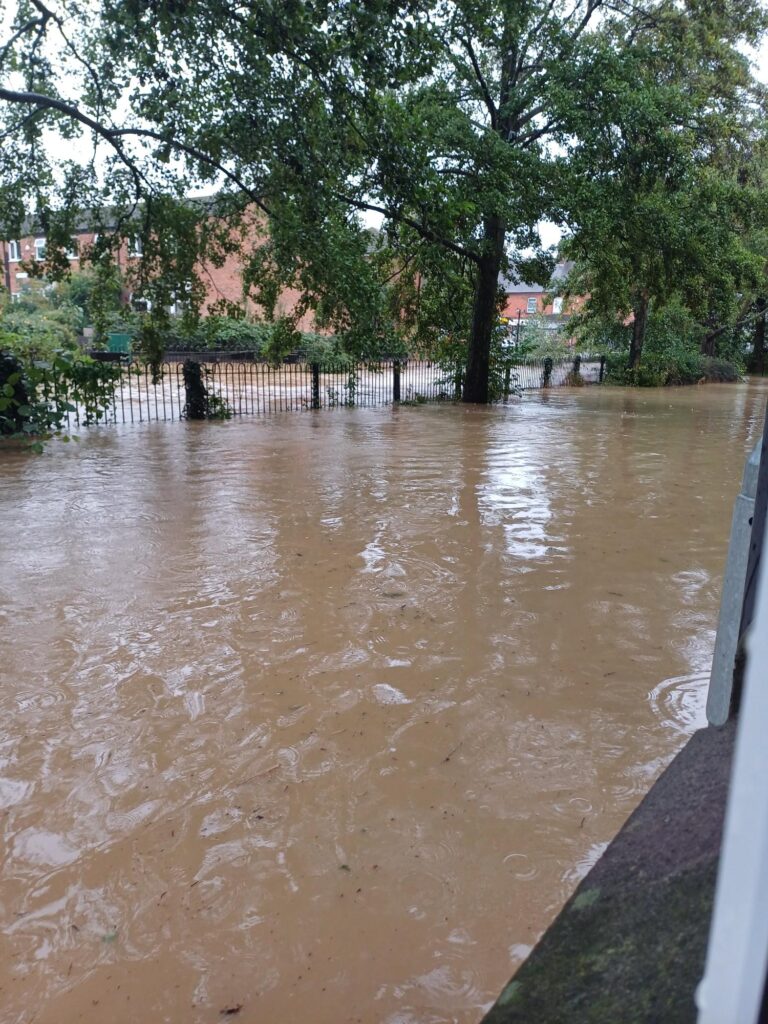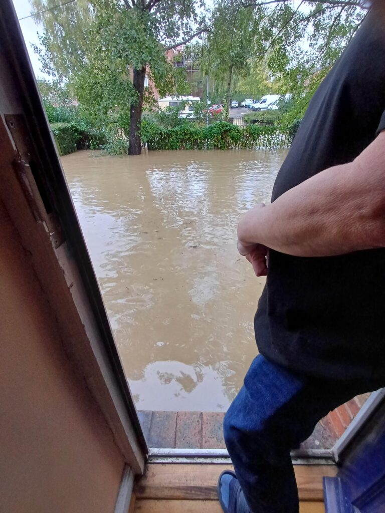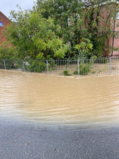 Alison Doughty who works in the Duck and Willow and lives at Brookside said “She was very frightened as the water filled their cellars and gardens.” See photographs in the gallery below, provided by herself showing the view from her front door, with the water, which included raw sewage, almost level with their front step, other pictures include view towards Melton Road.