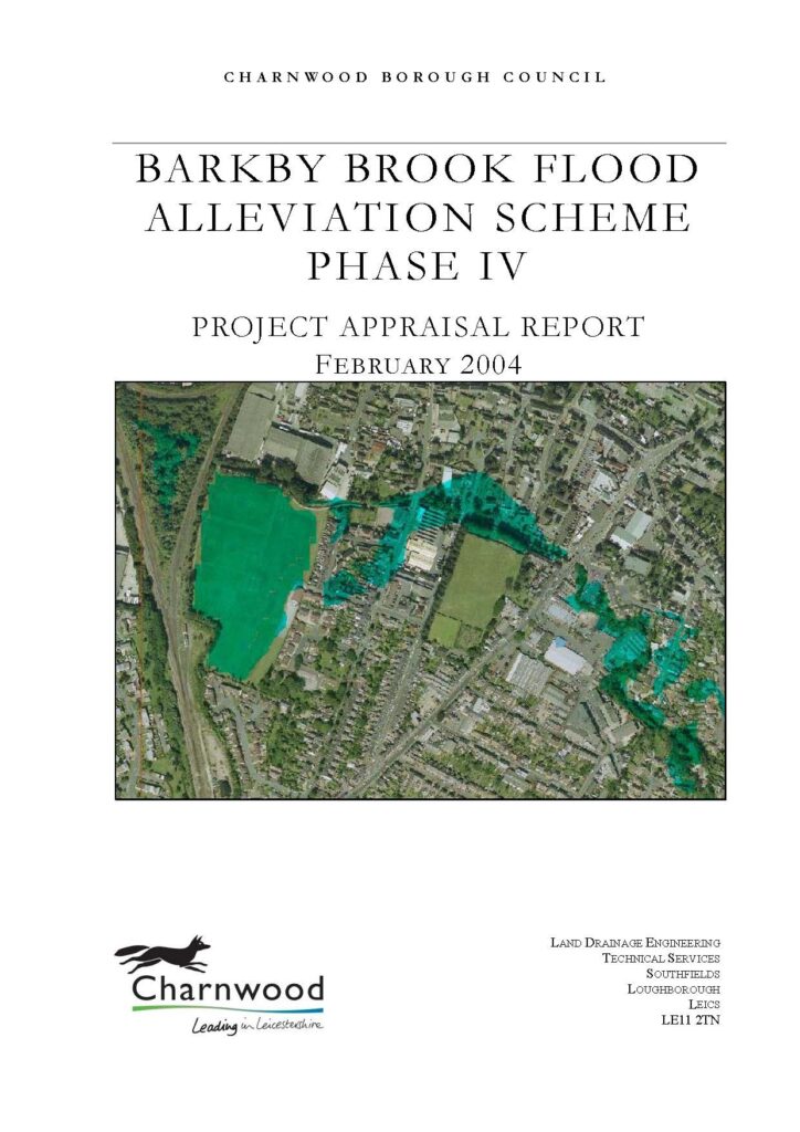 He sent the front pages of two newspapers that were around at that time, firstly the Syston Times (owned by The Melton Times) but no longer in print and The Grapevine, a broadsheet published here in Syston but again no longer in existence. The front covers from 1992 and 1993 record just how bad the floods were back then and what the then Town Council planned to do about it. The outcome was the measures detailed in the document shown below: it included clearing the brook of vegetation and concreting parts of it around the Brookside in Syston to assist the flow of the water and prevent any future flooding. It gives details of a prevention plan including maintenance devised by Charnwood Borough Council and approved by DEFRA and the environment agency.