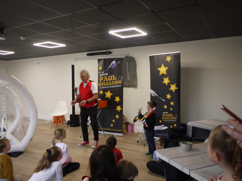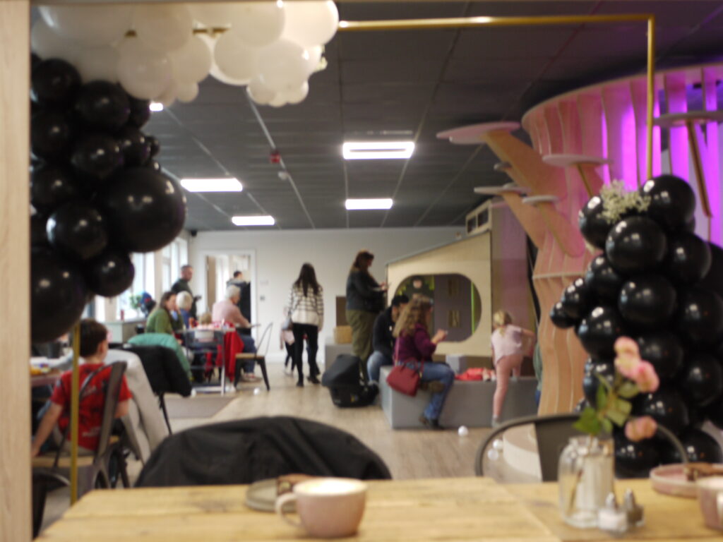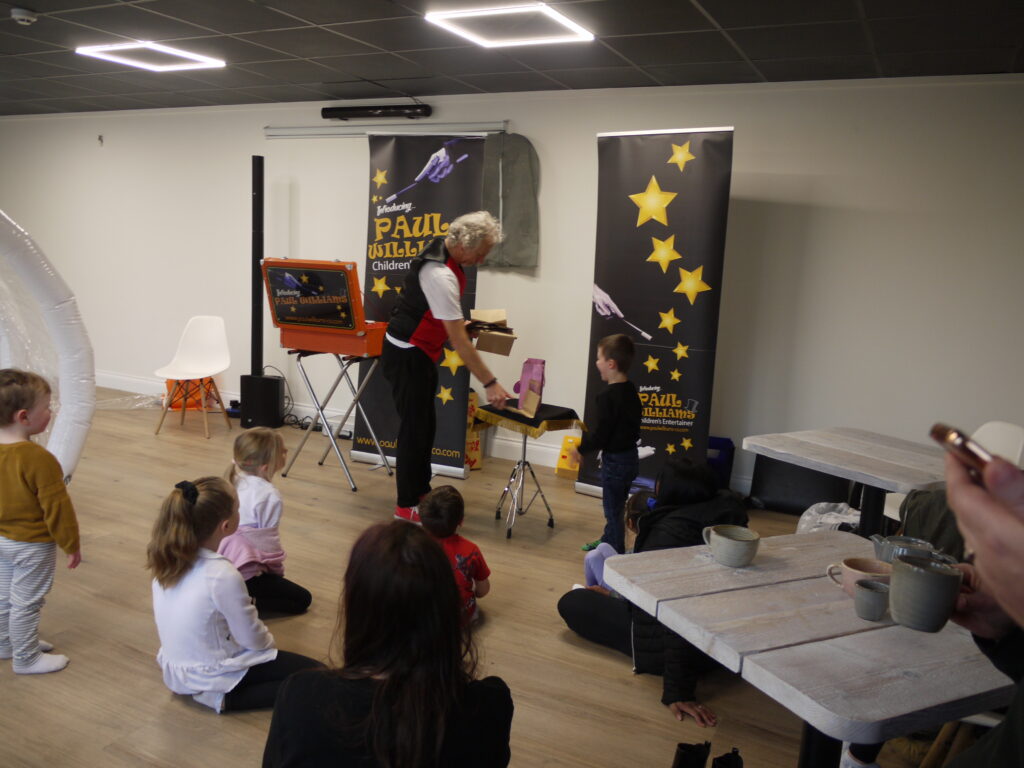 It is an impressive building with car park. The down stairs part is dedicated to providing a soft play area, a large room that can be used for private hire, which on the opening day had a great magician/children’s entertainer keeping not just the children but the adults happy, plus a large inflatable.