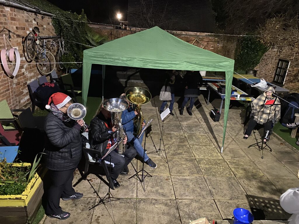 There was a wonderful array of local crafters set up and the lovely atmosphere was helped by music provided by the Syston Band who played in the courtyard garden behind the club.