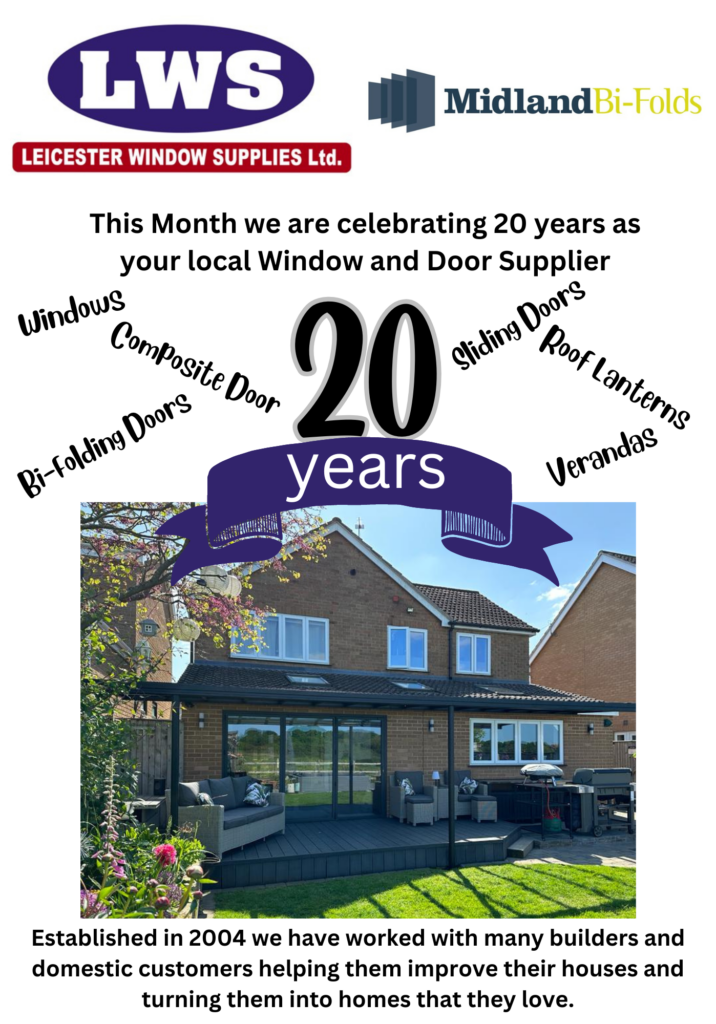 When you pass through Syston, you will find the Leicester Windows Supplies showroom, almost opposite Syston Health Centre. The company is 20 years old this year and has been successfully supplying and fitting high-quality UPVC and aluminium windows, blinds, doors, bi-folds and roof lights to both the trade and the public.