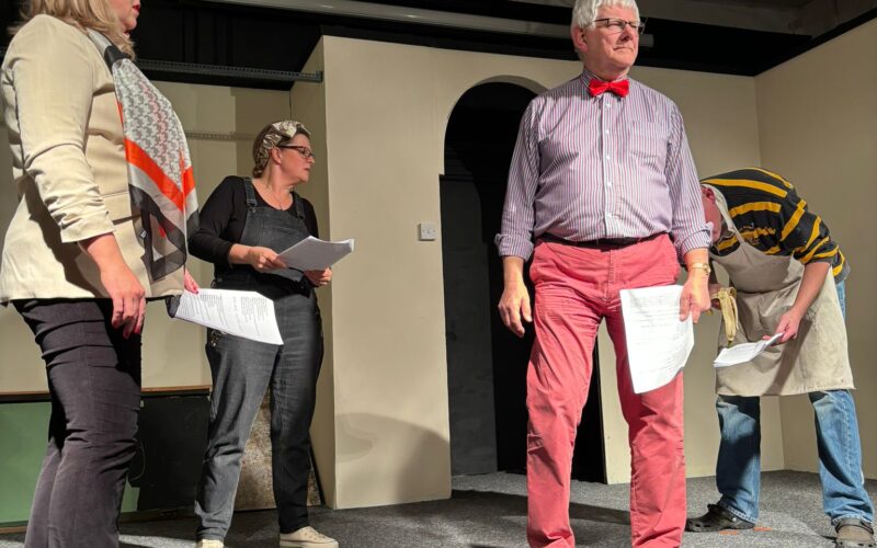 The eagle eyed among you will have noticed that your editor made a mistake in her review of the second of the two plays performed at Christmas, I put a character from the first play I twice – for which I sincerely apologise to Jo Gallagher for, I had correctly named her under photograph, shown below but missed her in my text! So, here is corrected review After an interval with refreshments we all took our places to see ‘Last Panto in Little Grimley’. This revolved around an amateur dramatic society trying to put on a Panto, written by their script writer Gordon, played by Ron Berry, who hopes to get audiences flocking to see it. However, as you can imagine this doesn’t go to plan, what with a dwindling budget, problem lighting and acting ability there are some interesting twists. The audience were in tears of laughter watching all the mishaps as they unfolded. What with slip-ups, knockouts and patch-ups along side of snide and sarcastic exchanges between Bernard, played by Jules Richards and Margaret, played by Kat Seddon. Plus the hilarity caused by Joyce, played by Jo Gallagher who is supposed to be taking minutes but struggles to spell and causes Gordon much frustration! They struggle to get everyone together to rehearse so the the final scene ends in complete chaos, with the lighting failing, actors all over the place until eventually the pantomime collides with other on stage and they all end up on the floor!