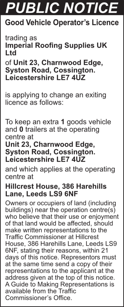 Imperial Roofing Supplies – Public Notice