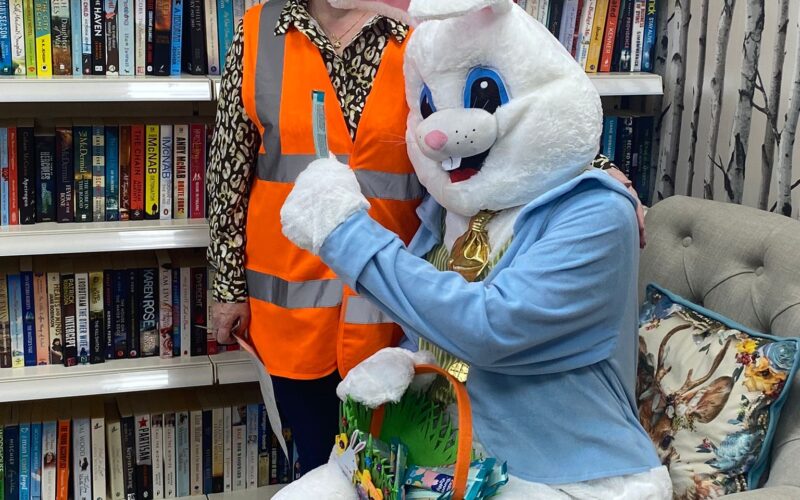 At one point during this event, The Easter Bunny had even hopped behind the counter to help serve some customers but unfortunately his big fluffy paws wouldn’t work on the till screens so he helped out by handing the books to children from behind the till once they had been put through the till.