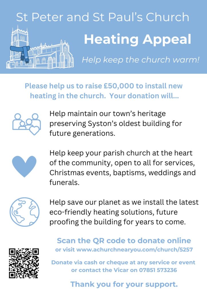 Cheques made payable to ‘PCC St Peter & St Paul Syston’