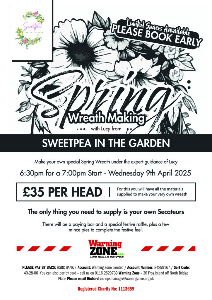 For more information and to book as places are limited, call 0116 262 9739 or email Richard on opsmanager@warningzone.org.uk