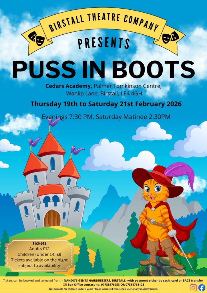 Guaranteed to be entertaining for the whole family, their forthcoming production of “Puss in Boots” will take place at the Palmer Tomkinson Theatre on the evenings of the 19th, 20th and 21st of February – with a matinee show on the Saturday afternoon.