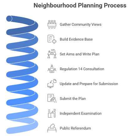 A Neighbourhood Plan has real influence. Once approved by residents, it becomes part of the statutory planning framework. That means it must be considered when planning applications are decided. It can shape where development goes, protect valued green spaces, influence the design and character of new buildings, support safer walking and cycling routes, and identify priorities for community facilities and infrastructure.